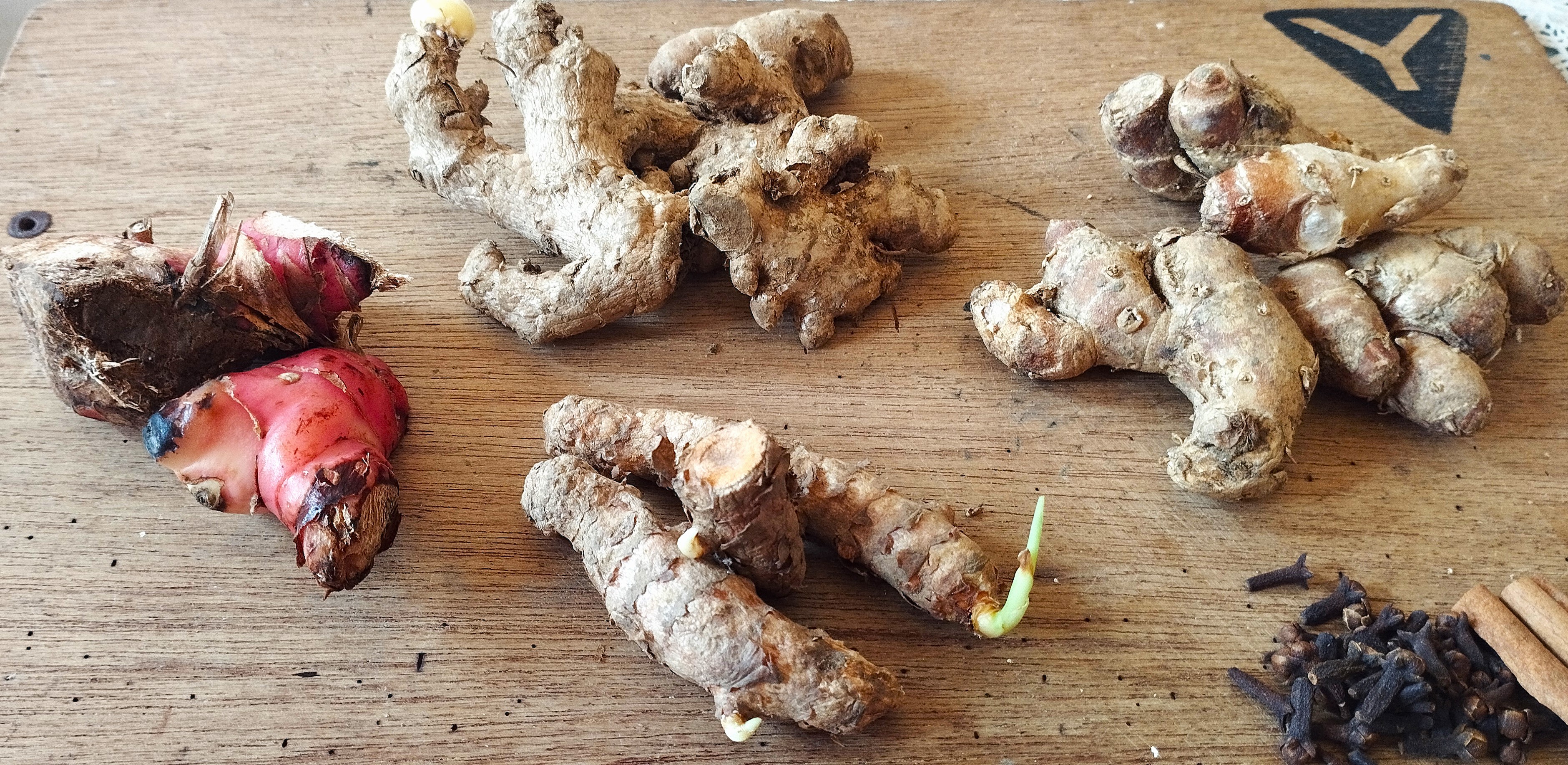 Kencur (Kaempferia galanga), turmeric (Curcuma longa), ginger (Zingiber officinale), and temulawak (Curcuma xanthorrhiza)—the main ingredients of jamu—are pounded or grated traditionally, using simple tools that have been passed down through generations.