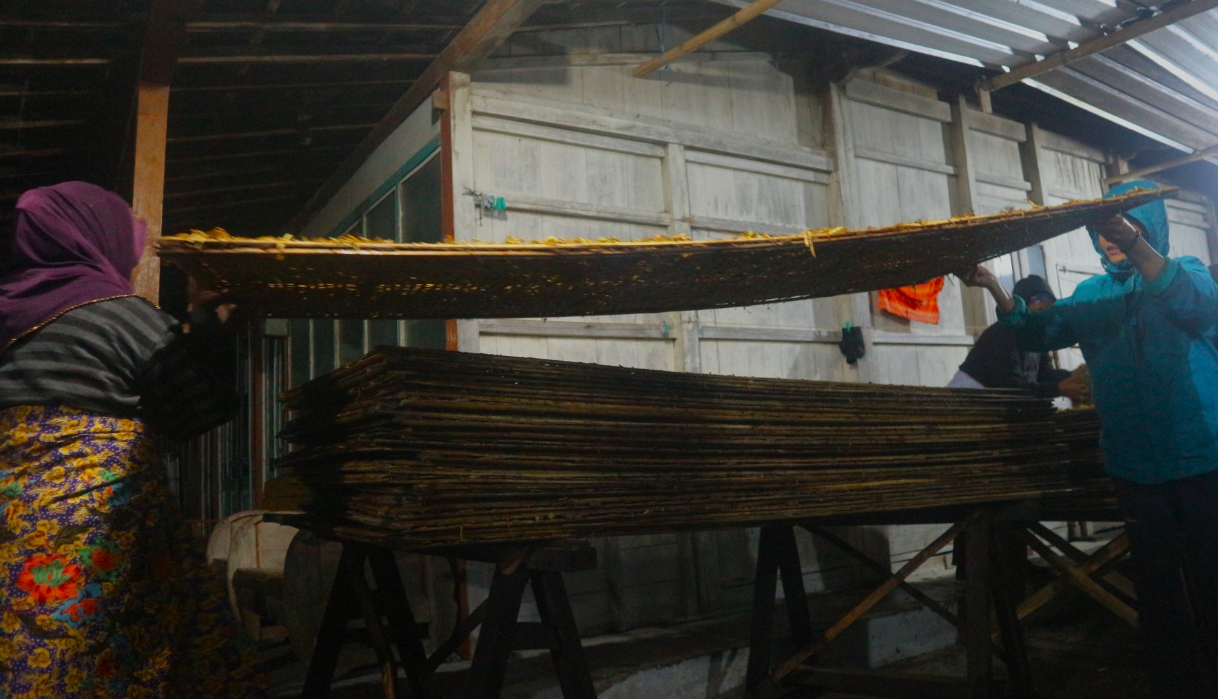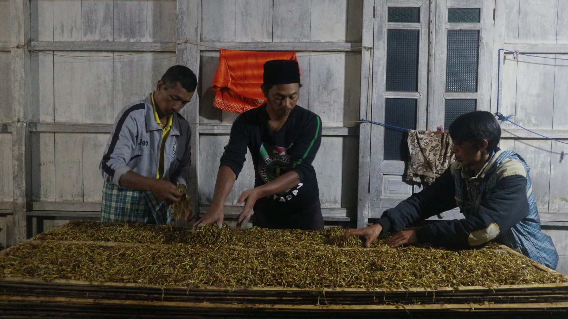 Starting from harvesting tobacco leaves in the field, the process of sorting and selecting the top leaves to the very bottom. Then arranging each leaf neatly and rolling it in strong bundles. Then shredding it on cold nights, arranging it in a widig, a two-meter long and one-meter wide bamboo weave for the drying process. Until they all lift the widig in a drying location that gets maximum sunlight so that the shredded tobacco leaves can be immediately sent to a cigarette factory or deposited to a collector in the city.