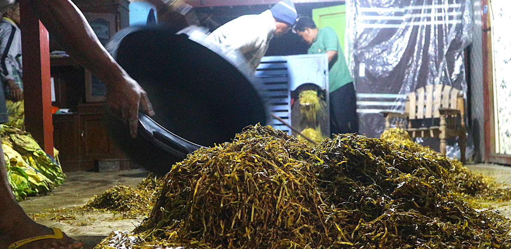 The roar of the tobacco shredding machine is a sign that the event will soon begin. Residents begin to arrive with cheerful faces in jokes and warm greetings between them. An experienced man, deftly lifts one by one the rolls of tobacco leaves and then inserts them into the shredding machine. Other men, swiftly collect the shredded leaves in a large container to be transported out of the room. Widigs is prepared, skilled and agile hands begin to "njereng" sheet after sheet of tobacco leaves neatly, so that the shredded results dry evenly when dried the next day.
