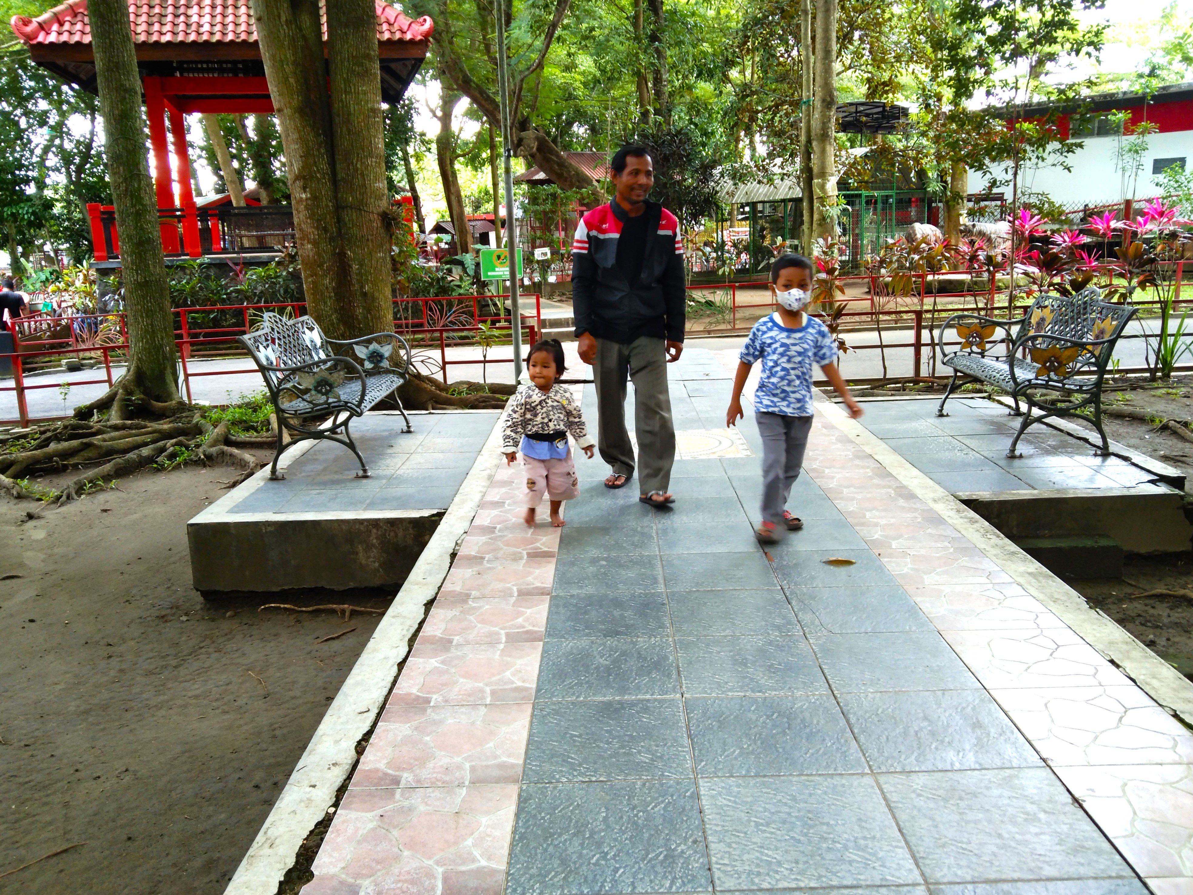 Big trees towering high, birds chirping and monkeys calling, pigeons flying to greet visitors and the sound of the fountain right in the middle of the park. The Blitar City Government as the manager of this location, complements the beauty of the park by keeping various types of animals. Such as the monkey species whose cage is located on the north side of the west side of the park, whose cage is next to deer, iguanas, porcupines, peacocks and ostriches. Then on the south side of the west, the bird cage is built very wide and high for various types of protected birds. This is where the mini zoo concept was created and visitors can interact by feeding the animals from outside the cage which is designed quite safely.